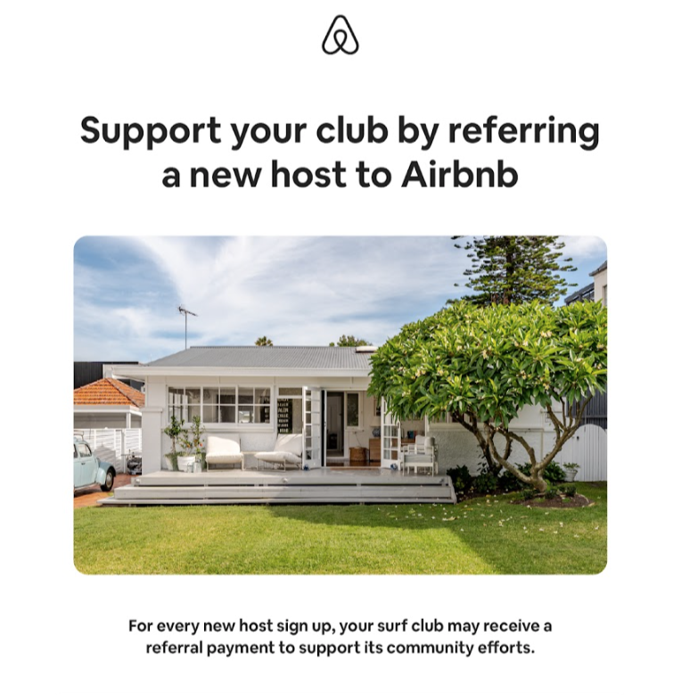 We’re excited to share a new fundraising opportunity for Surf Life Saving clubs this 2025/2026 season, made possible through Airbnb’s partnership with Surf Life Saving Australia.